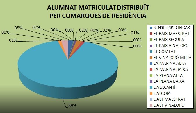 Alumnat matriculat distribuït per comarques de residència