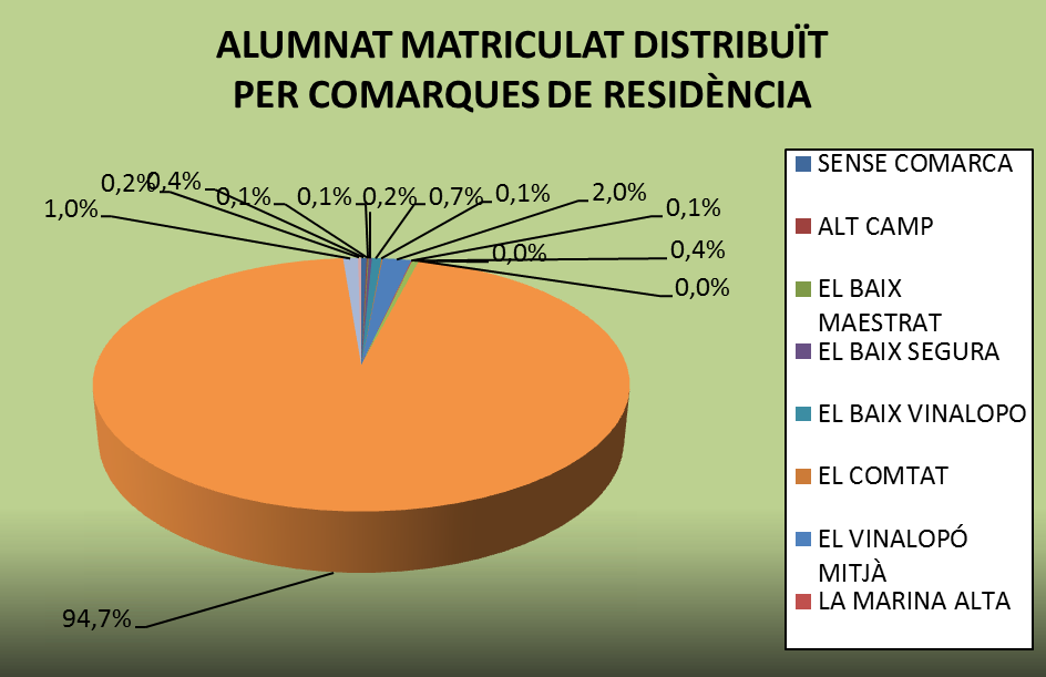 Alumnat per comarques de residència