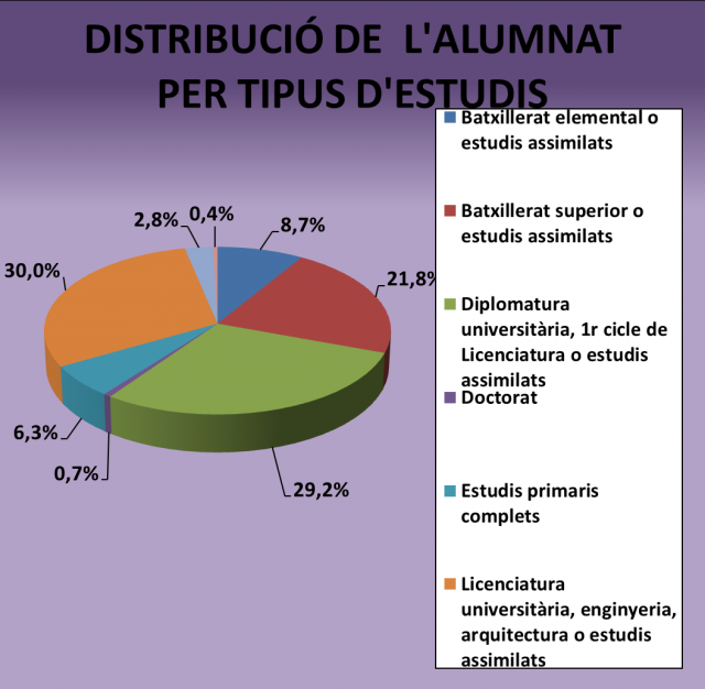 Distribució d'alumnat per tipus d'estudis